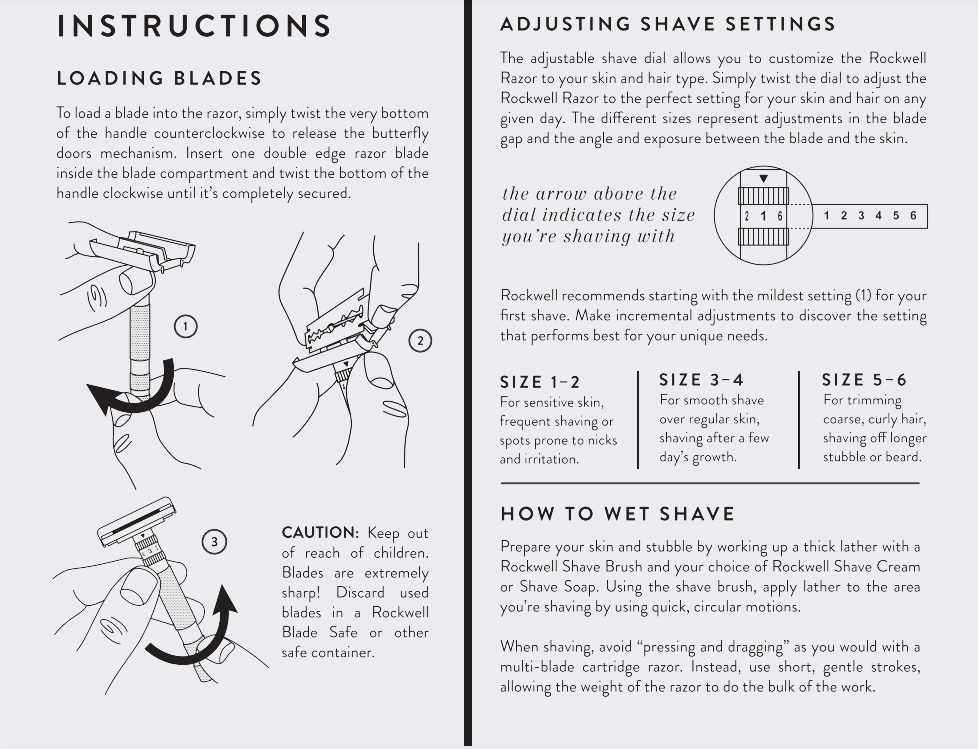 - Rockwell T2 Adjustable Razor: Features a twist-to-open mechanism and fluidly adjustable shave settings for a personalized shaving experience.